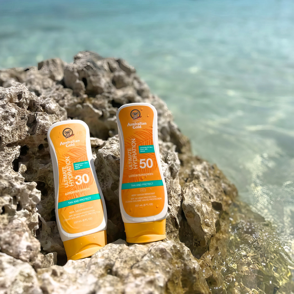 Alle Australian Gold LSF Sonnencremes in den hellen (weißen) Tuben sind hochwertige Sonnencremes ohne zusätzliche Bronzer. Die Australian Gold LSF 30 Lotion Sonnencreme schützt perfekt vor UVA und UVB und zieht schnell in die Haut ein. Enthält Aloe Vera, Vitamin E, australisches Teebaumöl und Sonnenblumenkernextrakte, so dass deine Haut nicht nur gut geschützt, sondern auch hervorragend gepflegt ist. Klebt nicht, fettet nicht, schweiß- und wasserabweisend. 237 ML Flaschen und ein toller Duft!